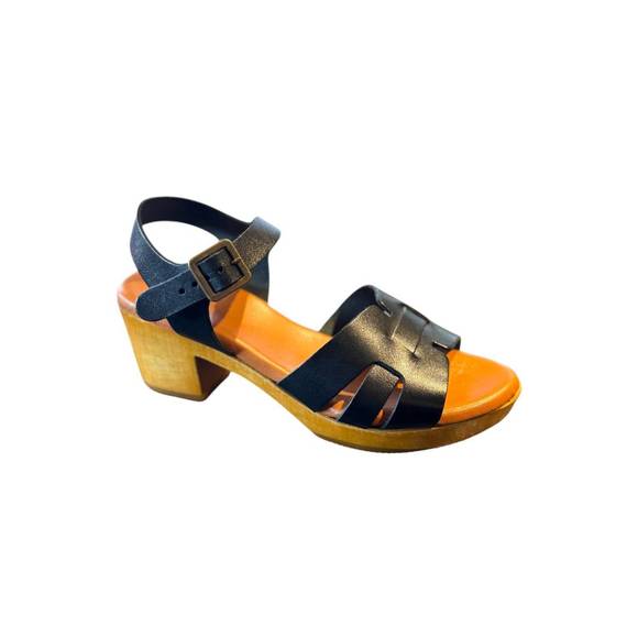 NEW BTU BY BERTUCHI women's tiana wooden platform sandal in black