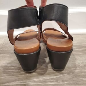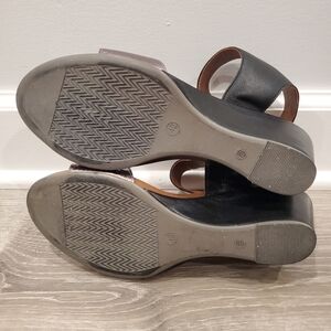 BUENO Ida Wedge Sandal In Pewter Metallic/ Black Leather