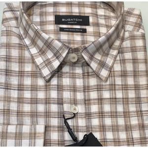 - Description: Elevate your holiday party look with the Bugatchi Uomo Long Sleeve Wovens Shaped Shirt in classic blue. Featuring long sleeves and a stylish point collar, this casual button-down shirt sports a regular placket for a sleek appearance. Crafted from 100% cotton, this piece boasts a plaid and check pattern perfect for a spring occasion. Closure: Button closure.
