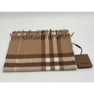 NEW BURBERRY 100% CASHMERE CHECK PLAID SCARF UNISEX MID CAMEL NWT!