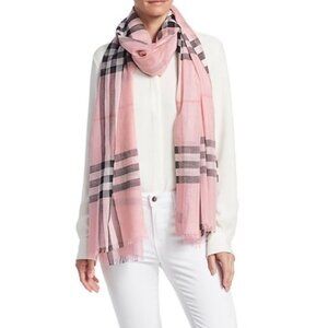 NEW BURBERRY Giant Check Wool Silk Gauze Scarf Ash Rose 220x70cm