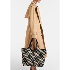 Made in Italy, this medium tote bag from Burberry is crafted of cotton twill woven with the brand's signature check. The lightweight, unlined style is trimmed with smooth leather and features a removable zip pouch.