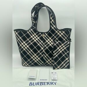 NEW! BURBERRY Medium 2pc Black Check Plaid Tote Bag Authentic NWT!