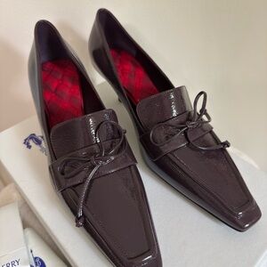 Experience timeless elegance with these Burberry loafers, crafted from rich brown leather. Featuring a sleek silhouette and polished finish, they are perfect for professional or formal occasions. The classic slip-on design ensures both style and comfort.