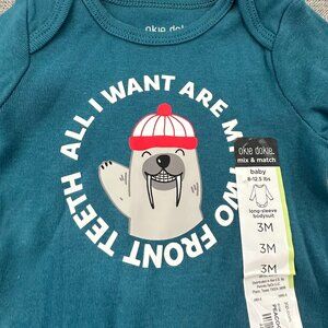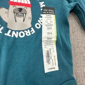 NEW! Baby Boy Okie Dokie Bodysuit 3 Mths Teal Cotton "All I Want For Are My Two