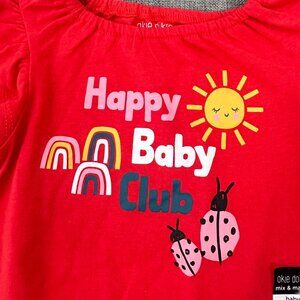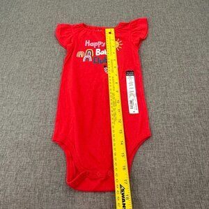 NEW! Baby Girl Okie Dokie Bodysuit Ruffle Sleeve 24 Months Red "Happy Baby Club"