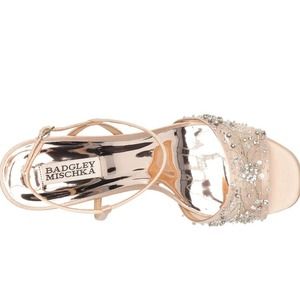 NEW Badgley Mischka Blaine Latte Embellished Rhinestones and beading Block Heel. Effortless, Chic, Versatile and Comfortable. Great fore Garden parties, spring wedding, New Years Eve, Black tie events. Looks wonderful with minimalist dresses and over the top outfits. Satin and mesh sparkle overlay open toe and ankle strap. MP6018 Blaine Open toe, Ankle Strap, Rhinestones and beading, Block heel 2.56" (65mm) Imported