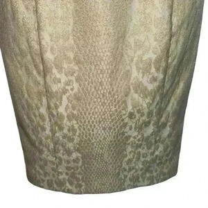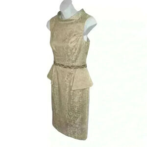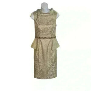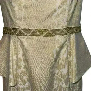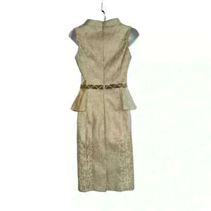 Make a statement at your next formal event with this stunning Badgley Mischka dress! This beautiful ivory and gold knee-length pencil dress is brand new with tags (NWT) and features intricate details that make it perfect for weddings, bridal parties, or even the mother of the bride.