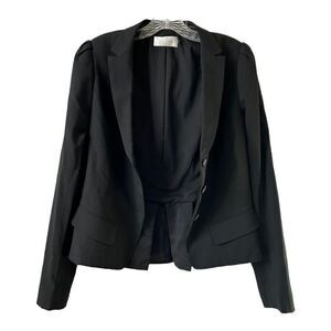NEW Badgley Mischka wool blend black blazer with pointed collar, buttons that run through the front and flap pockets at the waist.