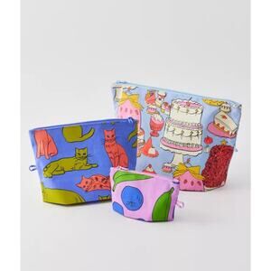 NEW! Baggu GO POUCH 3-PIECE SET in “Still Life” Limited Ed. Recycled Nylon Bags