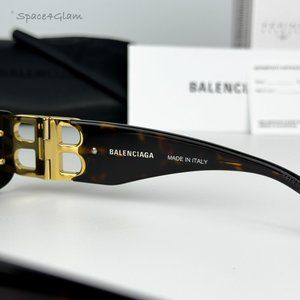 NEW Balenciaga BB0096S 002 Havana Gold Logo Green Rectangle Unisex Sunglasses