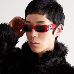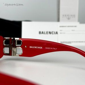 NEW Balenciaga BB0096S 015 Red Silver Logo Rectangle Unisex Sunglasses