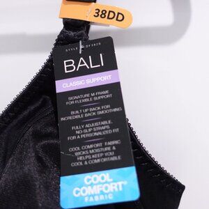 NEW Bali Double Support Tailored Wireless Lace Up Front Bra Black Size 38DD 3820
