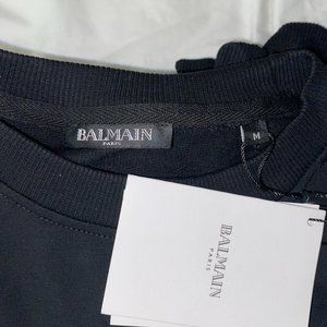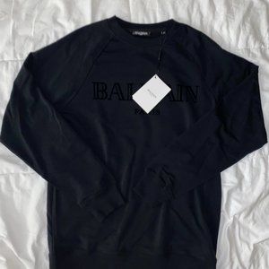 NEW Balmain Velvet Logo Black Crewneck Sweatshirt
