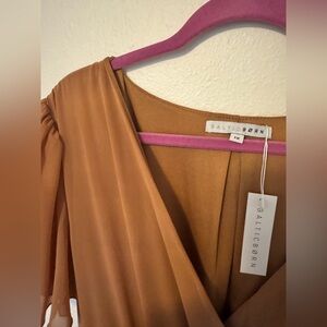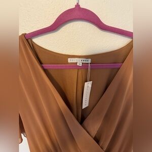 Brand new with tags! Sold out color and style - retail $89. Perfect warm brown neutral. Tie waist detail - tie is attached for ease. Offers welcome!