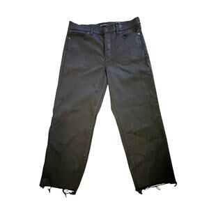 Banana Republic High Rise Straight Leg, Raw Hem Ankle Jeans Wax Coated Black