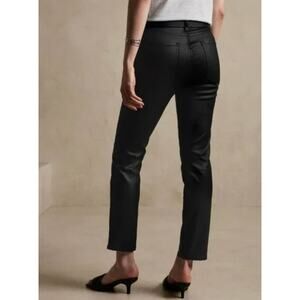 NEW! Banana Republic 28 High Rise $120 Straight Leg Wax Coated Jeans Crop Black