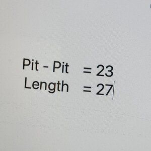 • XL size with pit-to-pit = 23 in, length = 27 in