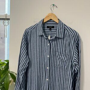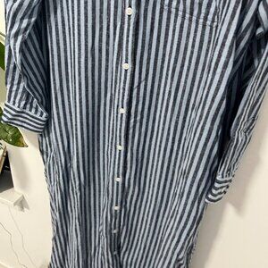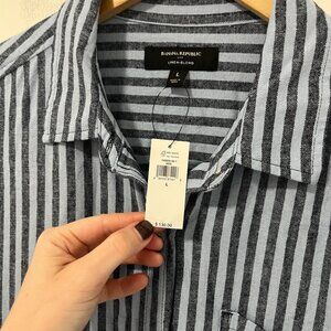 NEW Banana Republic Black & Blue Stripe Linen Midi Shirt Dress Size Large. New with tags NWT. Collared shirtdress. Full button up. Midi length. Long Sleeve. Soft, lightweight material. Relaxed fit.
