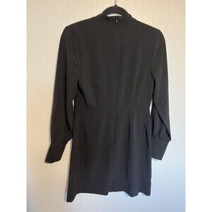 NEW Banana Republic Black High Neck Long Sleeve Short Dress Size 4P Keyhole Neck