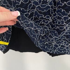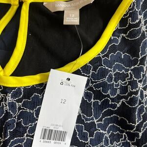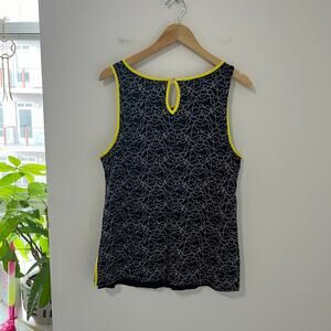 NEW Banana Republic Dark Blue Floral Lace Overlay Tank Blouse Size 12. New with tags NWT. Dark blue with bright neon yellow trim. Fully lined. Great workwear!