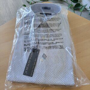 NEW Banana Republic Men's Slim Fit Non-Iron Dress Shirt White with Blue Pattern