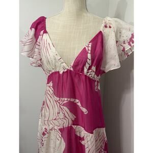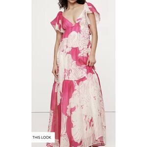 NEW Banana Republic Pink Floral Linen-Silk Tiered Maxi Dress Size 6 Msrp $260
