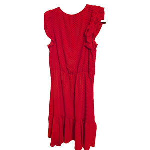 NEW Banana Republic Red w Black Polkadot Ruffle Dress Flutter Sleeve Size 8