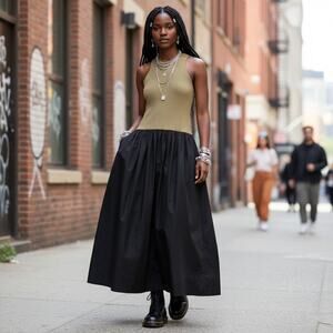 NEW Banana Republic Ribbed Racerback Tank Drop Waist Maxi Dress Olive Black Sz Size Medium $150