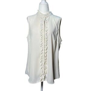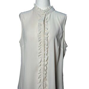 NEW Banana Republic Size PL Ruffle Front Collared Sleeveless Button Up Cream