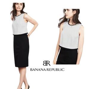 NWT Banana Republic Sloan Black White Color Block Dress with Stretch Size 14