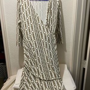 NEW Banana Republic White/Gold Jersey Wrap Dress, Chain Link Print,Medium, $99