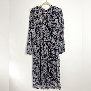 NEW Banana Republic Women's Navy Multi Floral Chiffon Midi Dress Feminine Boho