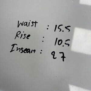 Waist = 15.5 inches, Rise = 10.5 inches, Inseam = 27 inches