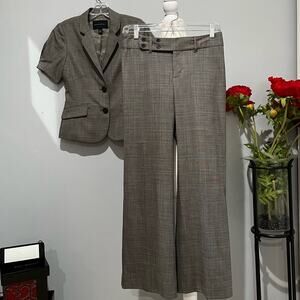 NEW Banana Republic Wool Tailored Academia Herringbone Plaid Pantsuit 0/2 NWOT