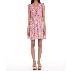 Ruffle mini length dress. Lightweight. V-neckline.