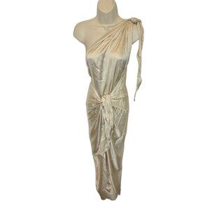 Tags: one shoulder dress, draped maxi dress, neutral gown, knot tie dress, beige formal dress, wedding guest outfit, resort wear, evening gown, slit maxi dress, Greek goddess dress, vacation dress, destination wedding attire, minimalist formalwear, summer evening dress, timeless event style.