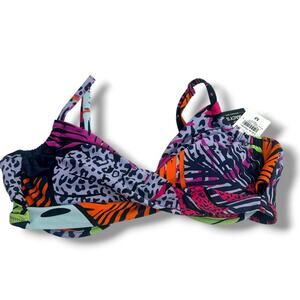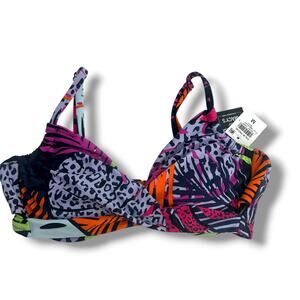 NEW Bar III Bikini Top Size Medium Palm Print Blue Criss Cross Underwire Swim