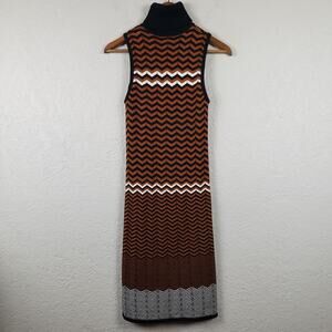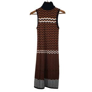 NEW! Bar III Knit Dress Zig Zag Mod Print Sleeveless Mock Neck - S