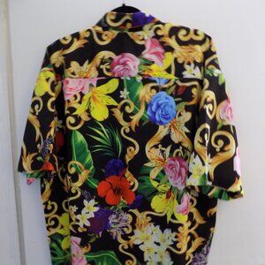 NEW Baroque Gold Floral Tropical Italian Designer Style Men Shirt Size XL