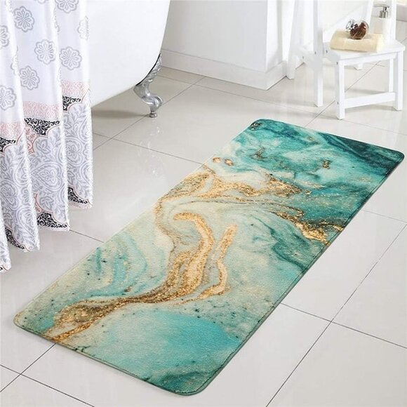 NEW Bath Rug Runner Luxury Turquoise Marble Velvet Bath Mat 18x47 inch Non-Slip