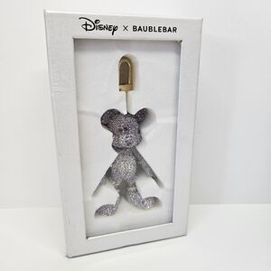 BaubleBar x Disney Mickey Mouse Bling Crystal bag key charm. Color is lavender purple. Gold-tone hardware. Mickey measures about 3" tall. Some light marks on keyring are from the manufacturing process and how item came new. New in box and smoke-free home.