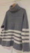 100% Cashmere turtleneck sweater with gray and cream stripes.