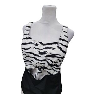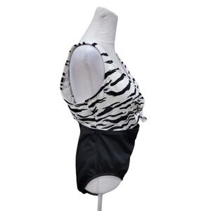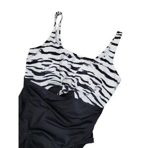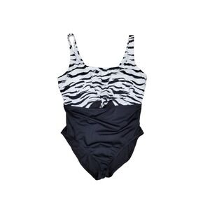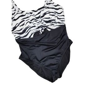 NEW Beach Betty By Miracle Brands One Piece Swimsuit Black White Size Large
