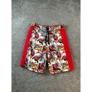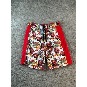 NEW Beach Rays Swim Trunks Mens Small Red Hawaiian Hibiscus Flower Bathing Suit