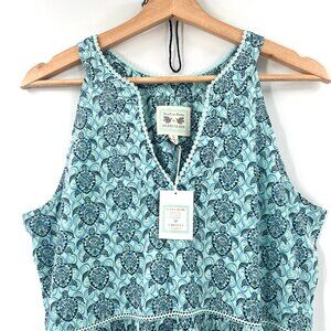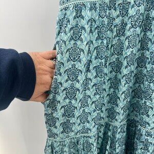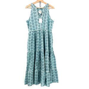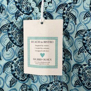 NEW Beach to Bistro Sigrid Olsen sea turtle teal aqua blue tiered midi dress S