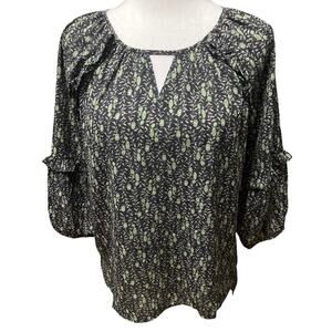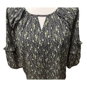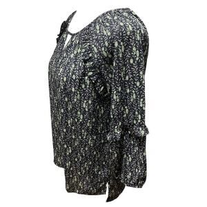 NEW Beacon Apparel Stitch Fix Black Floral Top Ruffle Keyhole Neckline XS