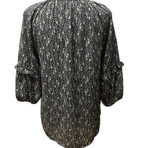 Beacon Apparel Women's Pullover High Low Hem Ruffle Detail Sz XS Black Print