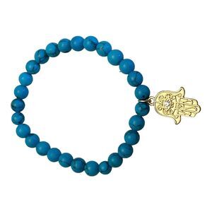 NEW Beaded HAMSA HAND EYE BRACELET Blue Gem Stone Beads Stretch Gold Charm - New Without Tags (NWOT)
