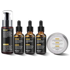 Included in the beard kit are shampoo, balm, 3 beard oils, plus Beard Care Ebook, comb, boars hair brush and stainless steel scissors, storage bag